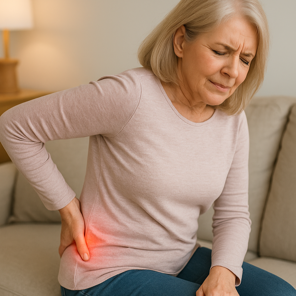 Stare seduti a lungo porta le anche a spostarsi e la colonna a incurvarsi, aumentando la pressione sulla zona lombare e sul coccige. Con il tempo questa pressione può irritare il nervo sciatico, causando dolori profondi e persistenti.